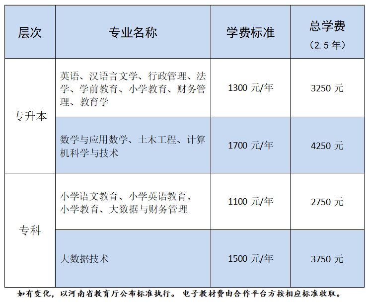 伟德国际bevictor19492025年高等学历继续教育收费标准