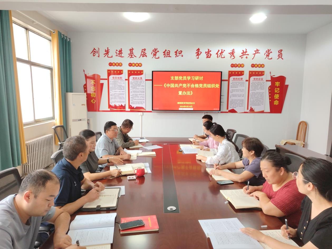 9月14日,公司召开教工党支部会议,深入学习领会研讨《中国共产党不合格党员组织处置办法》,教工第一、第二党支部全体党员参加会议,总支书记牛月翰主持会议。
