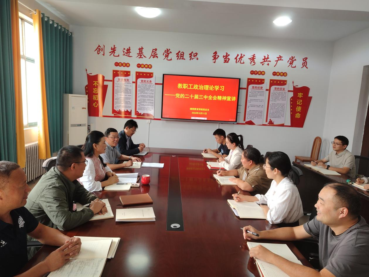 10月11日,公司召开全体教工会议,学习宣讲党的二十届三中全会精神,总支书记牛月翰主持会议。
