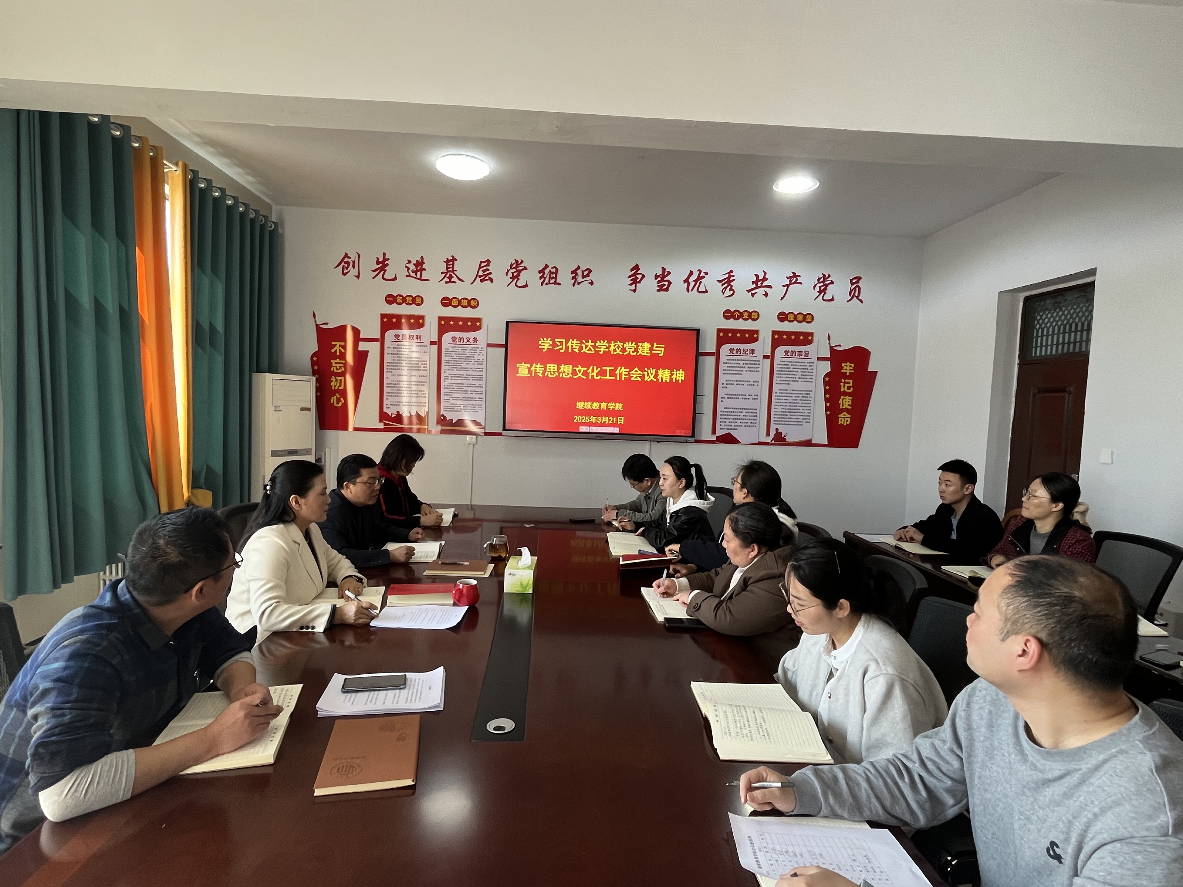 3月21日下午,伟德国际bevictor1949组织全体教职工集中学习传达公司党建与宣传思想文化工作会议精神,牛月翰书记主持会议。