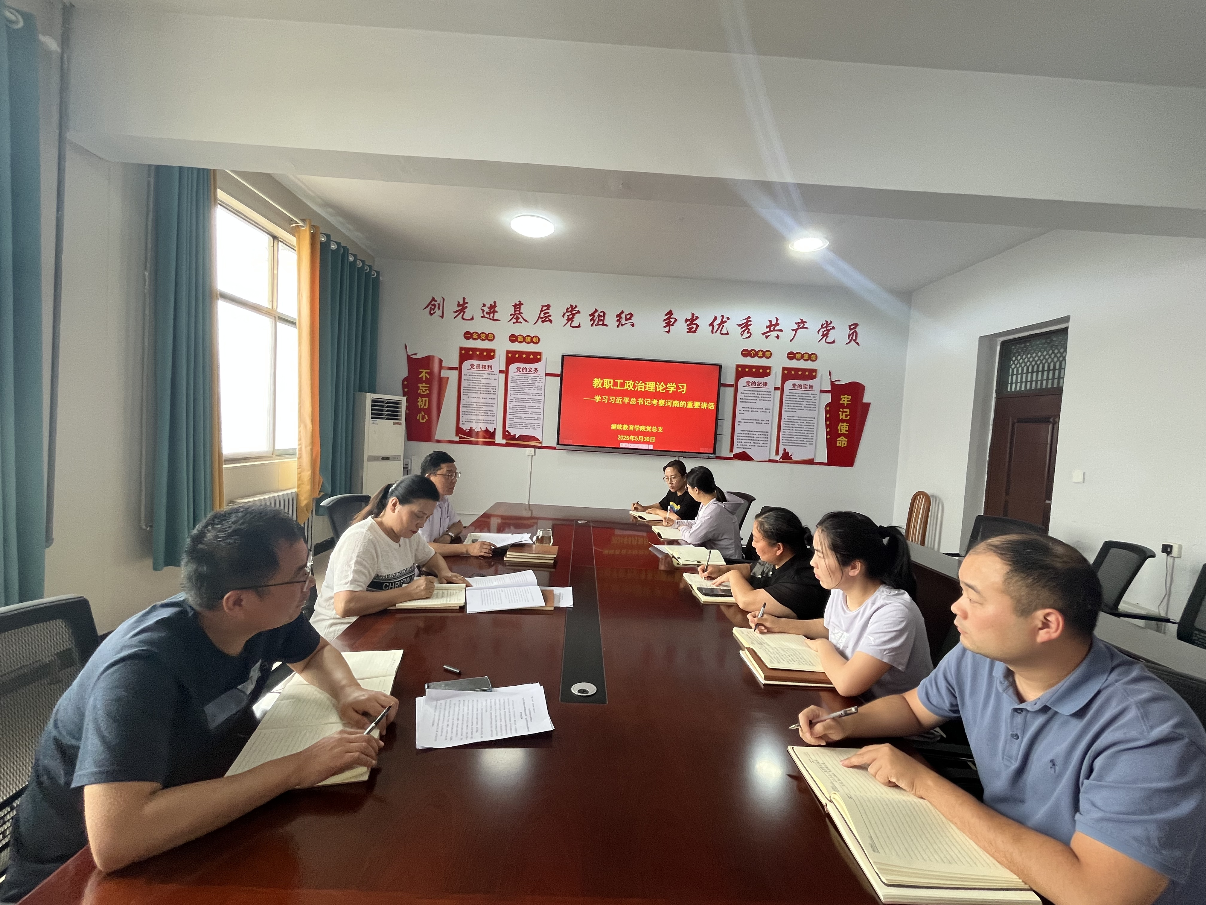 5月30日,公司党总支组织全体教职工进行政治理论学习,深入学习领会习近平总书记考察河南重要讲话。牛月翰主持会议。