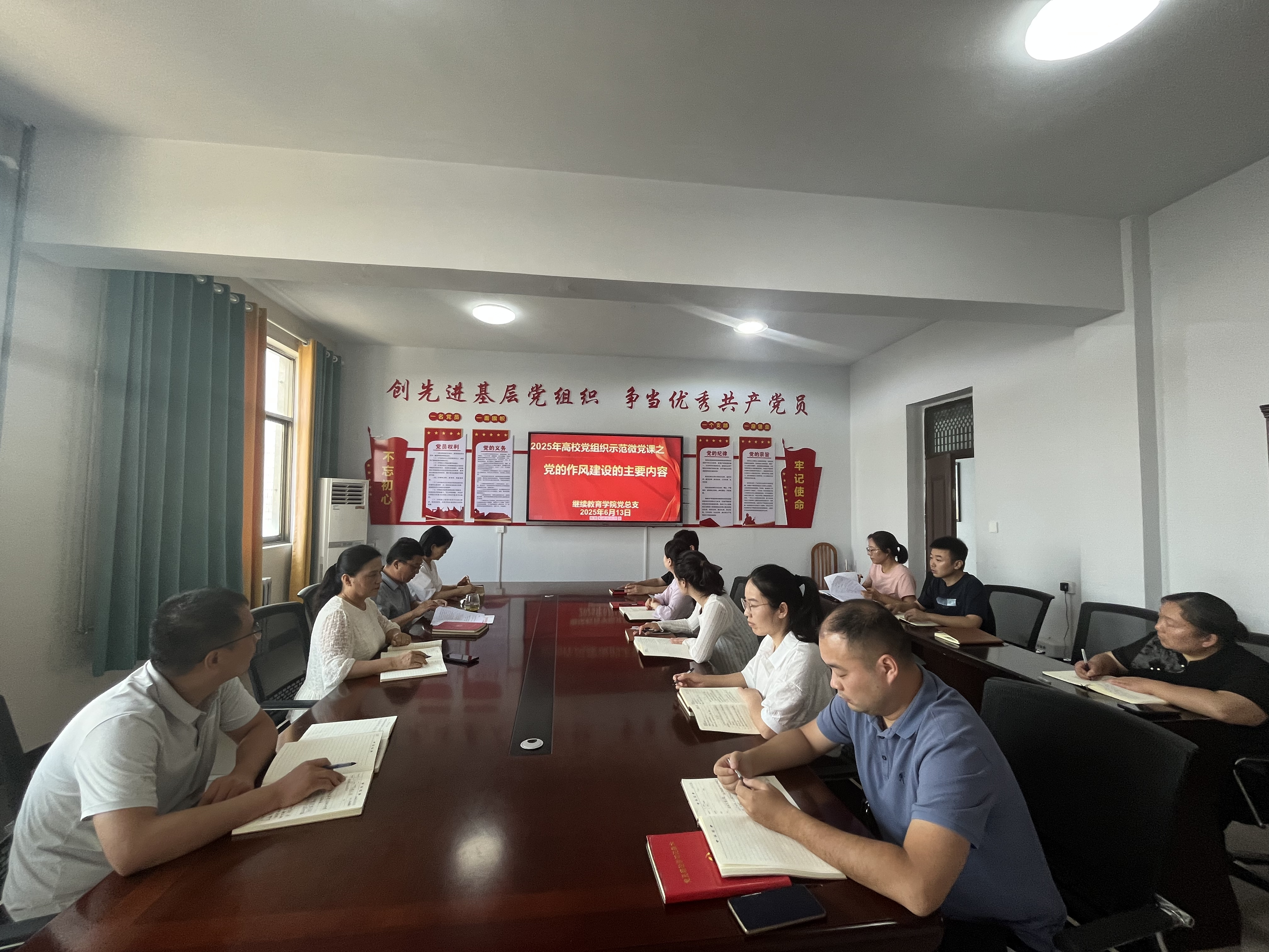 全体教职工集中观看视频,跟随山东大学、湖南大学、天津大学和西安交通大学师生党员,走进2025年高公司党组织示范微党课《党的作风建设的主要内容》,共同把握党的作风建设的主要内容,锤炼过硬作风,推动全面从严治党向纵深发展,以作风建设新成效赋能教育强国建设。