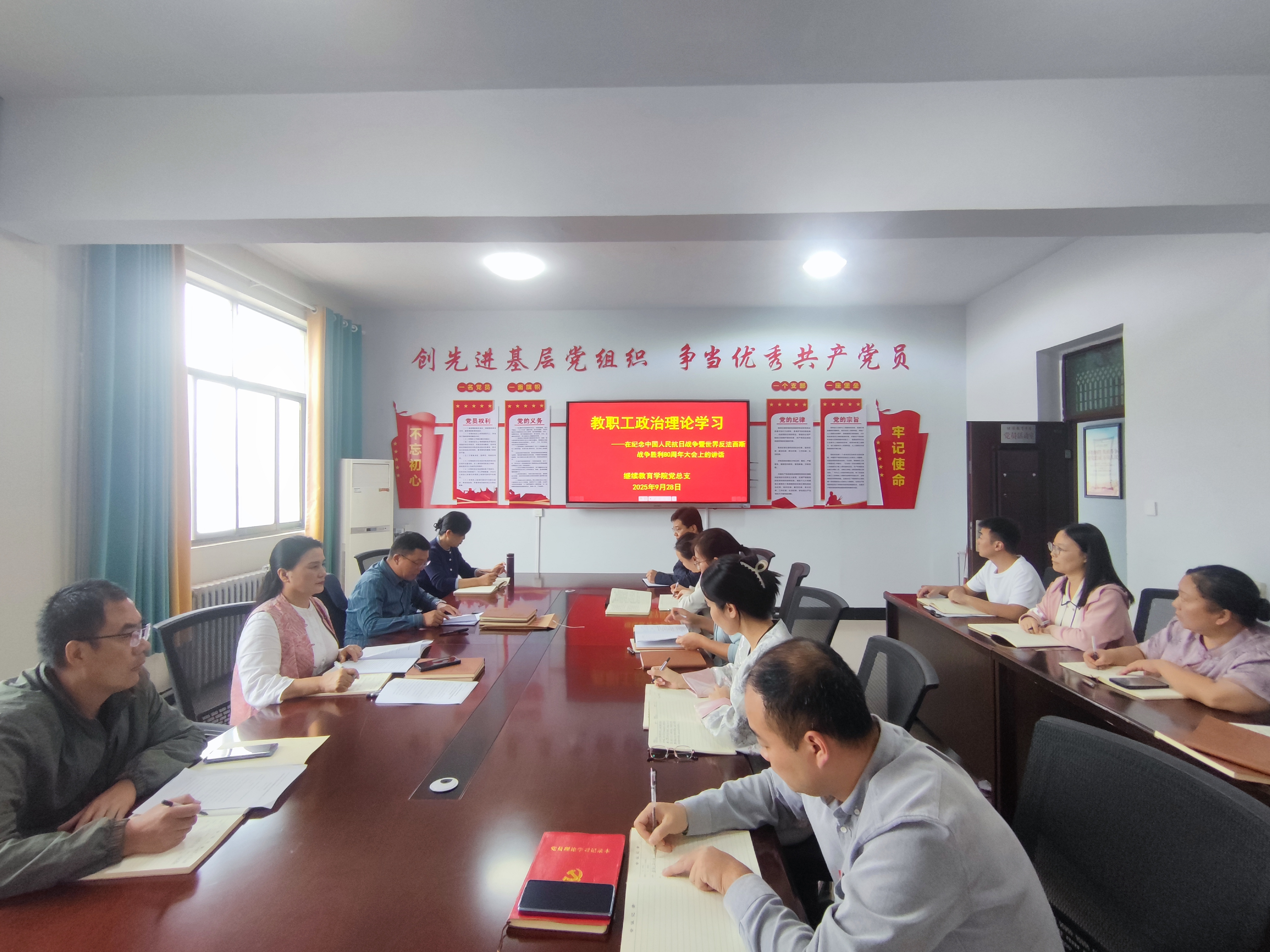 9月28日下午,公司党总支组织全体教职工专题学习习近平总书记《在纪念中国人民抗日战争暨世界反法西斯战争胜利80周年大会上的讲话》精神。旨在深刻领会讲话的核心要义与时代价值,激励广大教职工传承伟大抗战精神。牛月翰主持会议。