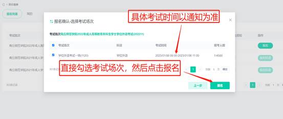 7.直接勾选考试场次,然后点击报名。