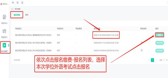 4.依次选择报名缴费—报名列表进行报名。(英语专业选择日语批次,其他专业选择英语批次,切勿错选或者重复选择)