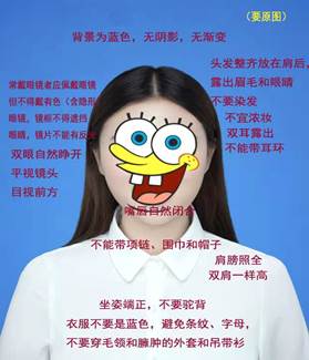 (2)证件照片要求(用于线上考试人脸识别):近期免冠蓝底电子照片。照片要求人像清晰,杜绝自拍、修饰或者手机拍摄打印出来的照片上传。照片大小均不大于2M,否则会显示上传失败。